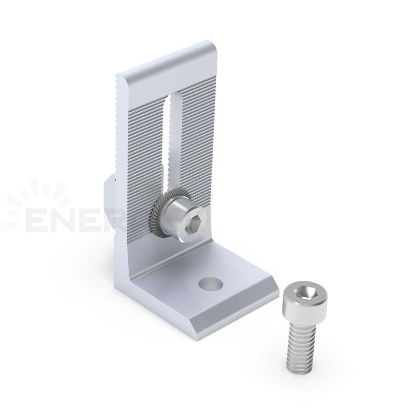 Уникалният дизайн на скобите за средни и крайни части се използва за соларни модули с дебелина 30-40 мм. Дизайнът, който включва основни спецификации, ви спестява разходи за инвентар, бърз и лесен за монтаж. Иновативният дизайн на основата за свързване на релси може ефективно да увеличи здравината на продукта и да гарантира безопасността на използването му. Enerack предлага голямо разнообразие от скоби за покриви от ламарина, предоставяйки на клиентите опции. Възможно е персонализиране според нуждите на клиента, за да се отговори на специалните изисквания за монтаж.